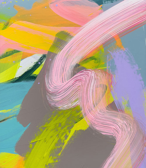 This painting draws on the native palette of the Surf Coast bushland—deep greens of dense foliage, flashes of ochre earth,...