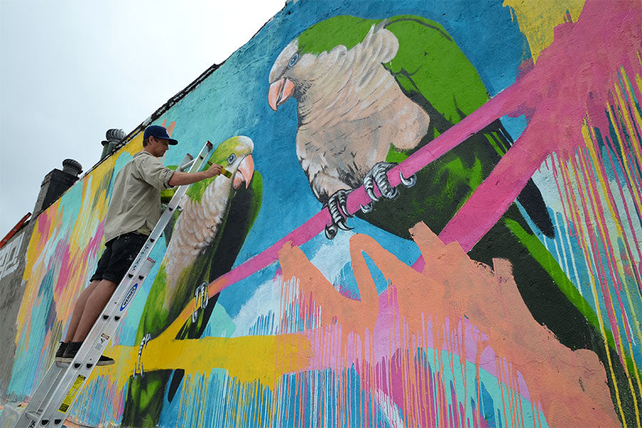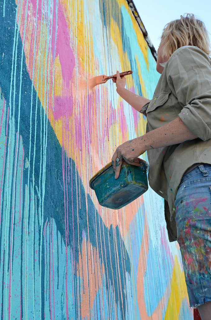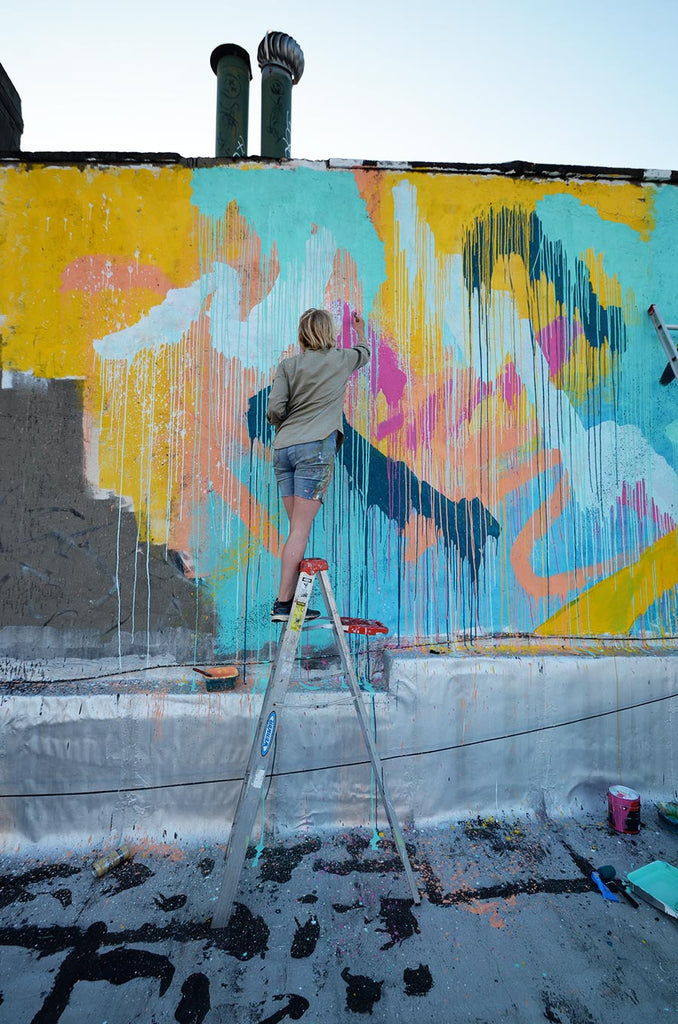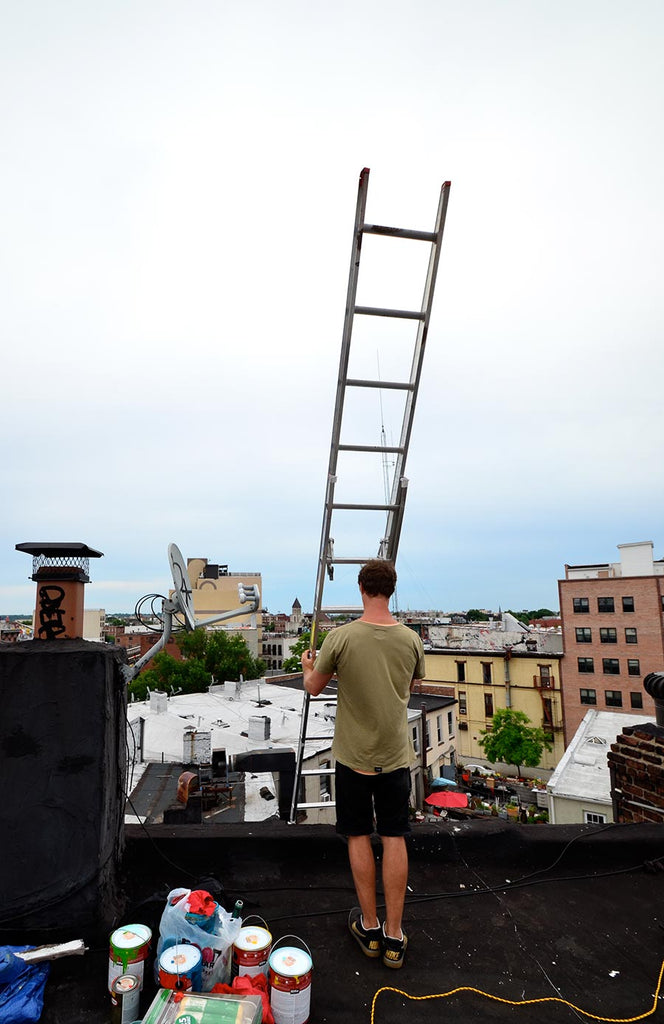 Situated on the rooftop overlooking the J-Line and Broadway in Bushwick, Brooklyn – Martinich and Carran’s final and largest work responded strongly to this ambitious site. Scaling rusty fire-escapes and multiple ladders to access the roof, it was well worth the effort to activate this amazing site, best viewed from the iconic J-train.