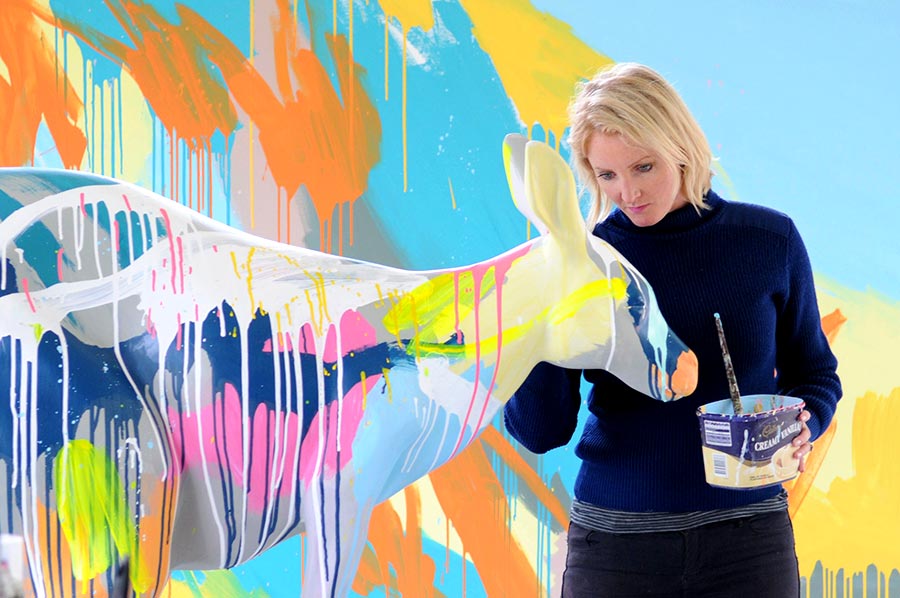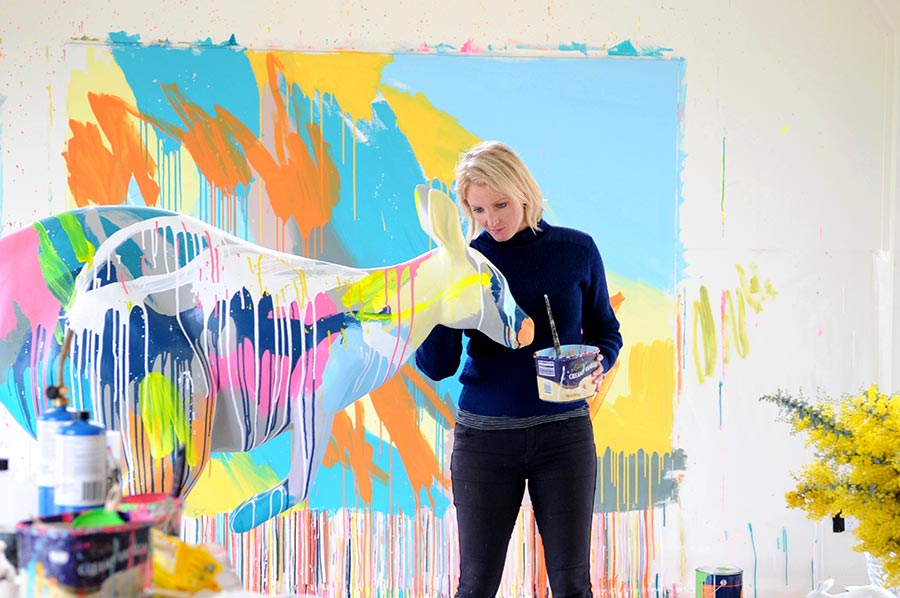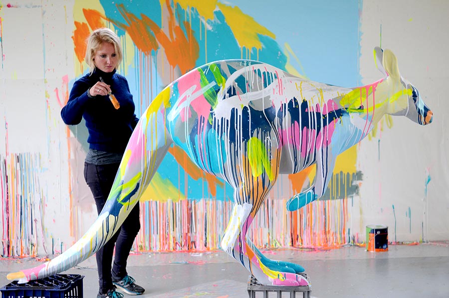 The Alannah and Madeline Foundation and Yarra Valley Chocolaterie & Ice Creamery united to present ‘Hop for Hope’ – a collaborative art exhibition raising funds to keep children safe from violence and bullying. Nestled amongst the picturesque views of the Yarra Valley, the Hop for Hope exhibition showcased 40 larger than life-size kangaroos designed and created by iconic Australian artists and identities. Artists were given the theme of ‘hope’ to create their kangaroos, with each artist interpreting hope in their own unique way. Rowena Martinich was one of the artists invited to paint a kangaroo to be exhibited as part of this event.