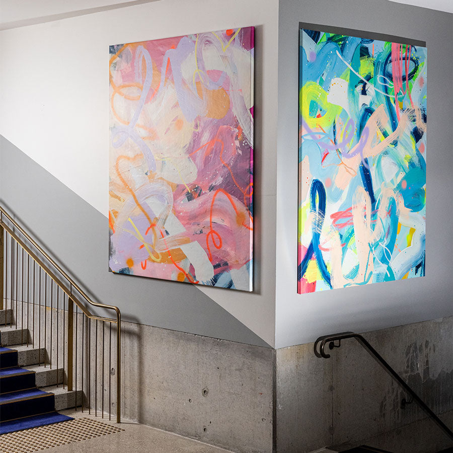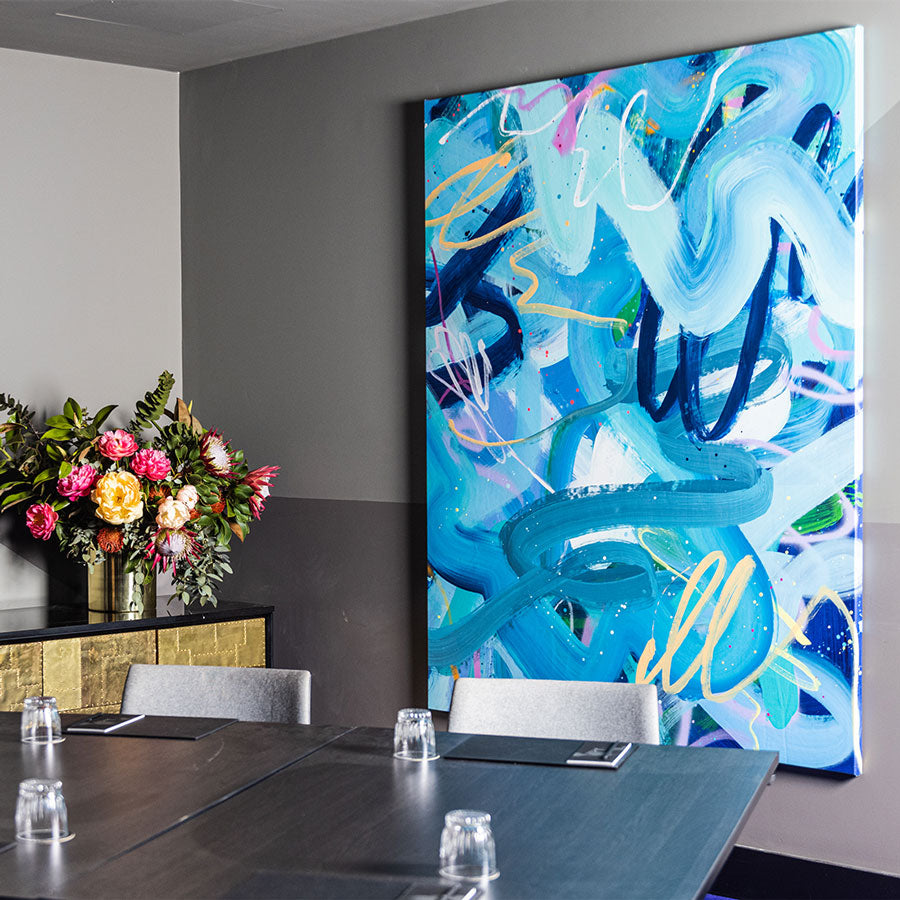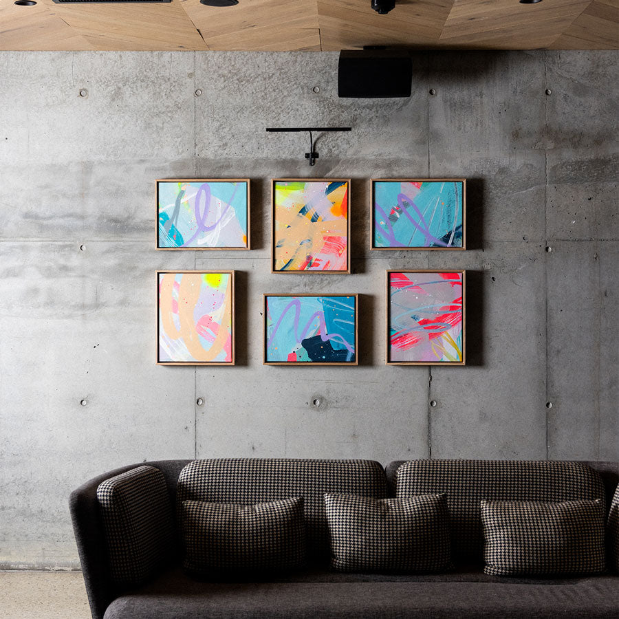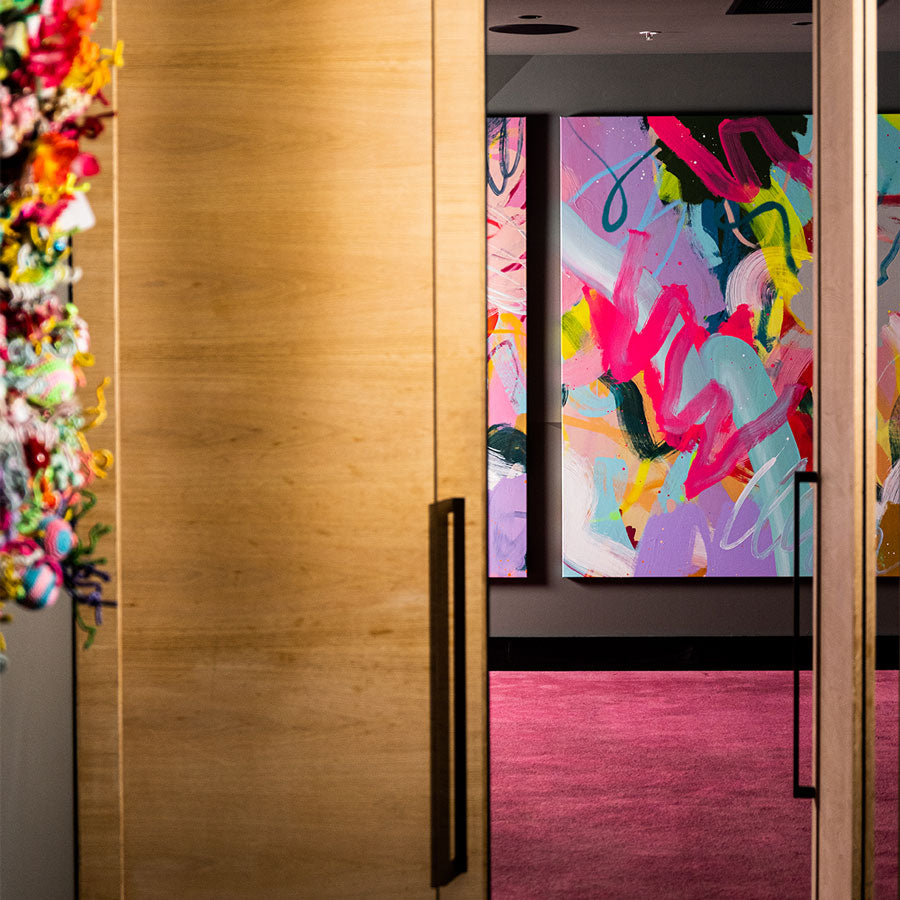 Emerging from lockdown, these paintings intend to weave positivity into the everyday. Visiting a hotel like QT Melbourne is enhanced and made a little more special with the presence of these works.