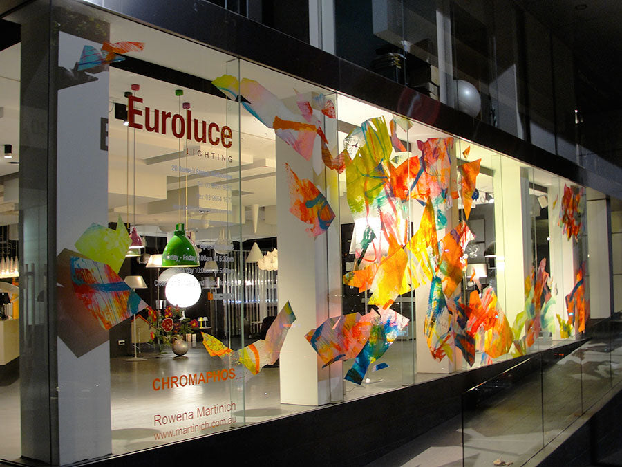 Chromaphos at Euroluce Shattered forms and luminous brushstrokes splay across the façade of Euroluce’s Melbourne showroom in Rowena Martinich’s public artwork Chromaphos. This work has been made possible through the sponsorship of JBSeed and MAB Corporation, and the assistance of Euroluce.